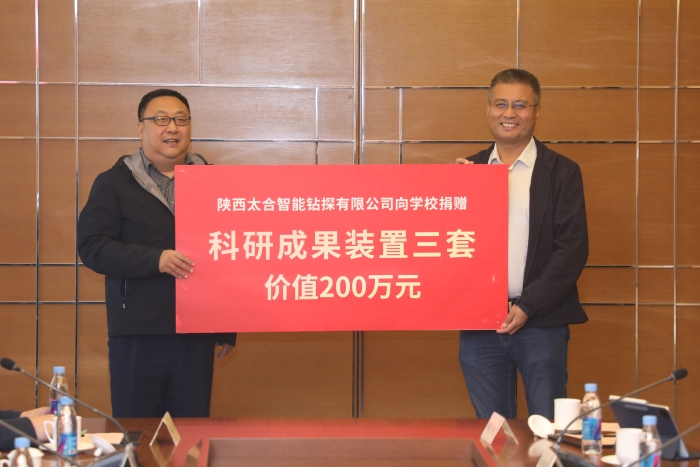 在庆祝我校建校71周年华诞之际,11月3日,陕西太合智能钻探有限公司(以下简称“太合智能公司”)向学校捐赠三套科研成果装置。