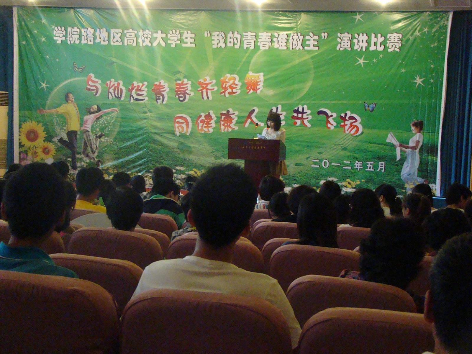 2012年5月31日下午2时,由学院路街道办事处主办的“我的青春谁做主”高校演讲比赛在中国矿业大学学术交流中心二层举行。此次比赛共有学院路七所大学参加,地大四名同学参赛,并全部获奖。其中地球物理与信息技术学院杨婷婷、数理学院胡佳妮、土地科学技术学院温凯获得二等奖,人文经管学院秦汉获得三等奖。在演讲评分时段,我校李仙英同学作为唯一的表演嘉宾为在场观众送上了朝鲜族独舞,给大家带来了艺术的享受并获得了满场喝彩。