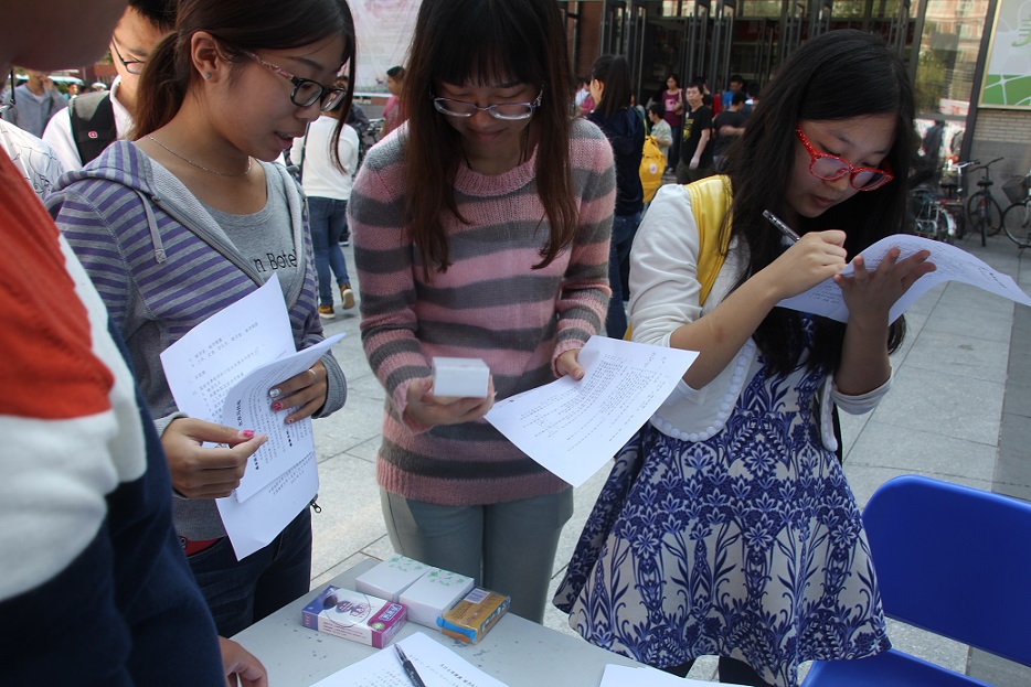2014年09月24日中午,计划生育办公室在校内举办了“关注科学避孕享受健康生活”大型宣传活动。通过发放有奖答题,普及科学避孕知识;积极参与旗帜签名,共同关注生殖健康行动,营造健康幸福的生活。