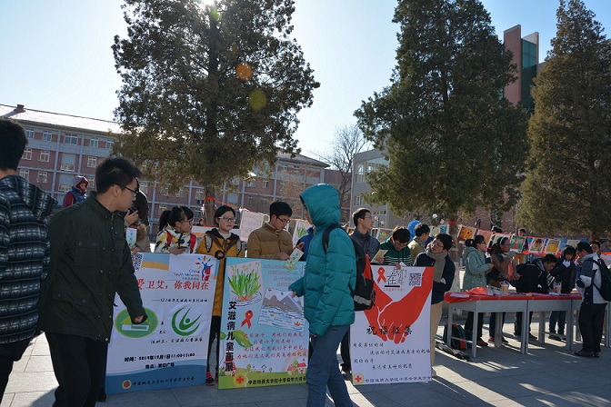 12月1日是世界艾滋病日。校医院(计划生育办公室)、红十字会学生分会在夏日广场联合开展了多种形式预防艾滋病的知识宣传活动。同学们在寒冷的冬日里,迎着北风,通过发放艾滋病知识宣传折页、组织红丝带签名活动、进行艾滋病儿童画展、征集“爱”的祝福、防艾演讲征集、爱的抱抱、防艾棋盘答题游戏等宣传,旨在提高人们对艾滋病的认识与了解,动员更多的青年人参与到预防艾滋病这一公益活动中,保护青年人免受性病、艾滋病、非意愿妊娠和性暴力的威胁,维护青年人自身的健康和家庭的幸福,促进和谐、健康、文明的校园文化。同时呼吁大家:行动起来,向“零”艾滋迈进,向全社会传递“危险就在身边,防艾人人有责”。