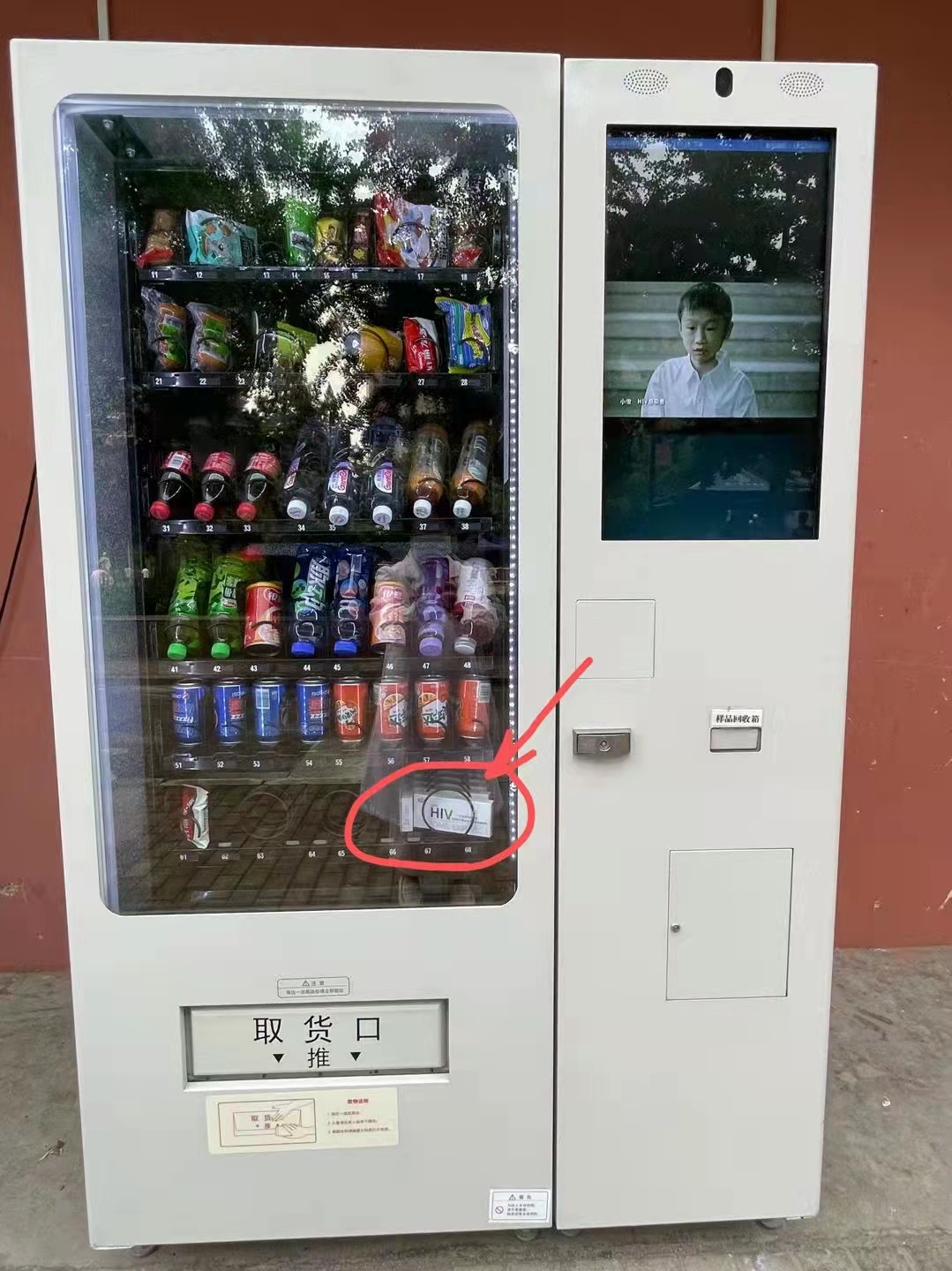 2021年9月初,艾滋尿液检测服务包售货机顺利落座中国地质大学(北京)学14楼西侧楼外(夏日广场东北角),有需求的人员只需花费30元自助购买此检测包,并按操作步骤完成尿液取样、回收,通过专业医疗机构的检测,本人登陆网站即可远程获取艾滋初筛检测结果。