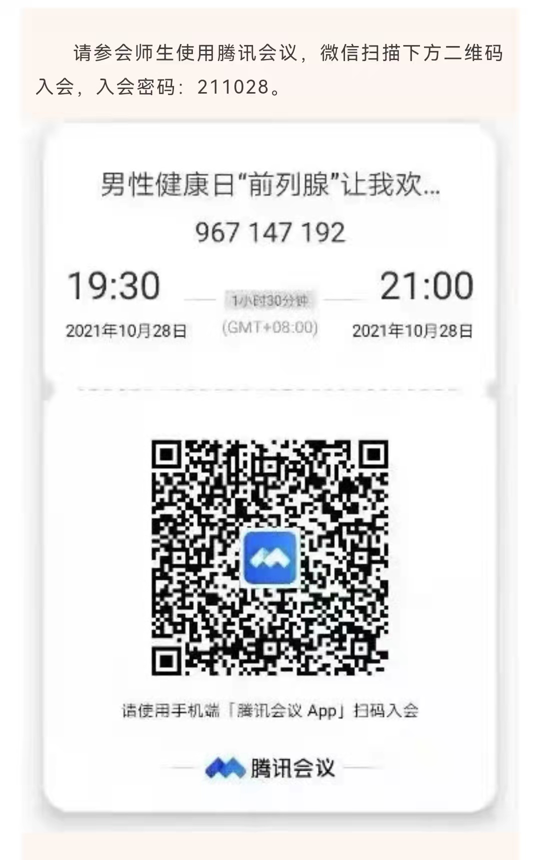 请参会师生使用腾讯会议,微信扫描下方二维码入会,入会密码:211028。