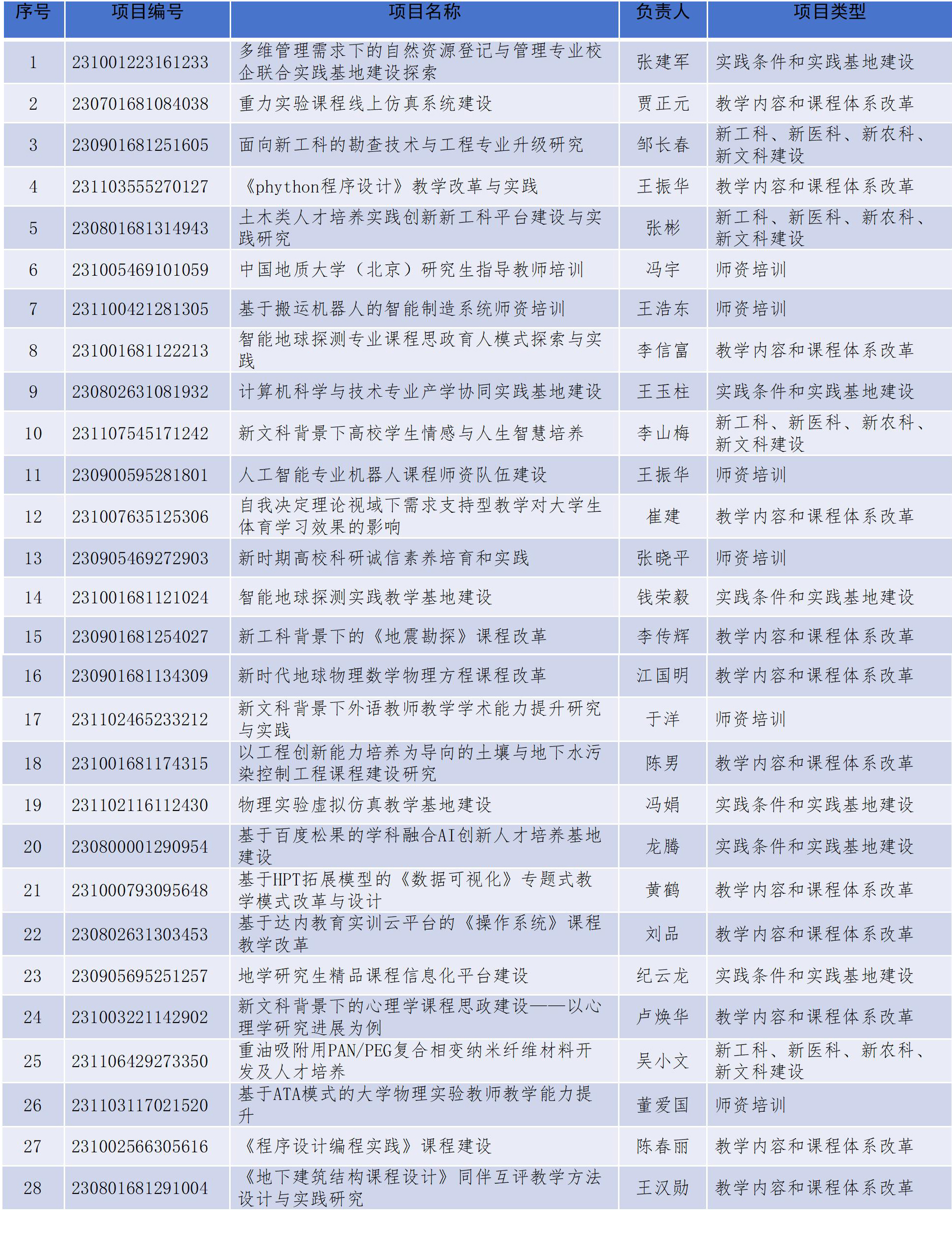 此次获批项目包括教学内容和课程体系改革类12项、师资培训类6项、实践条件和实践基地建设类6项、“四新”建设类4项。