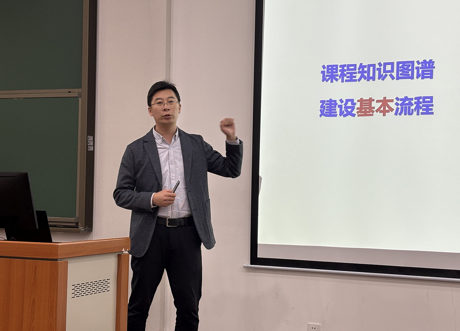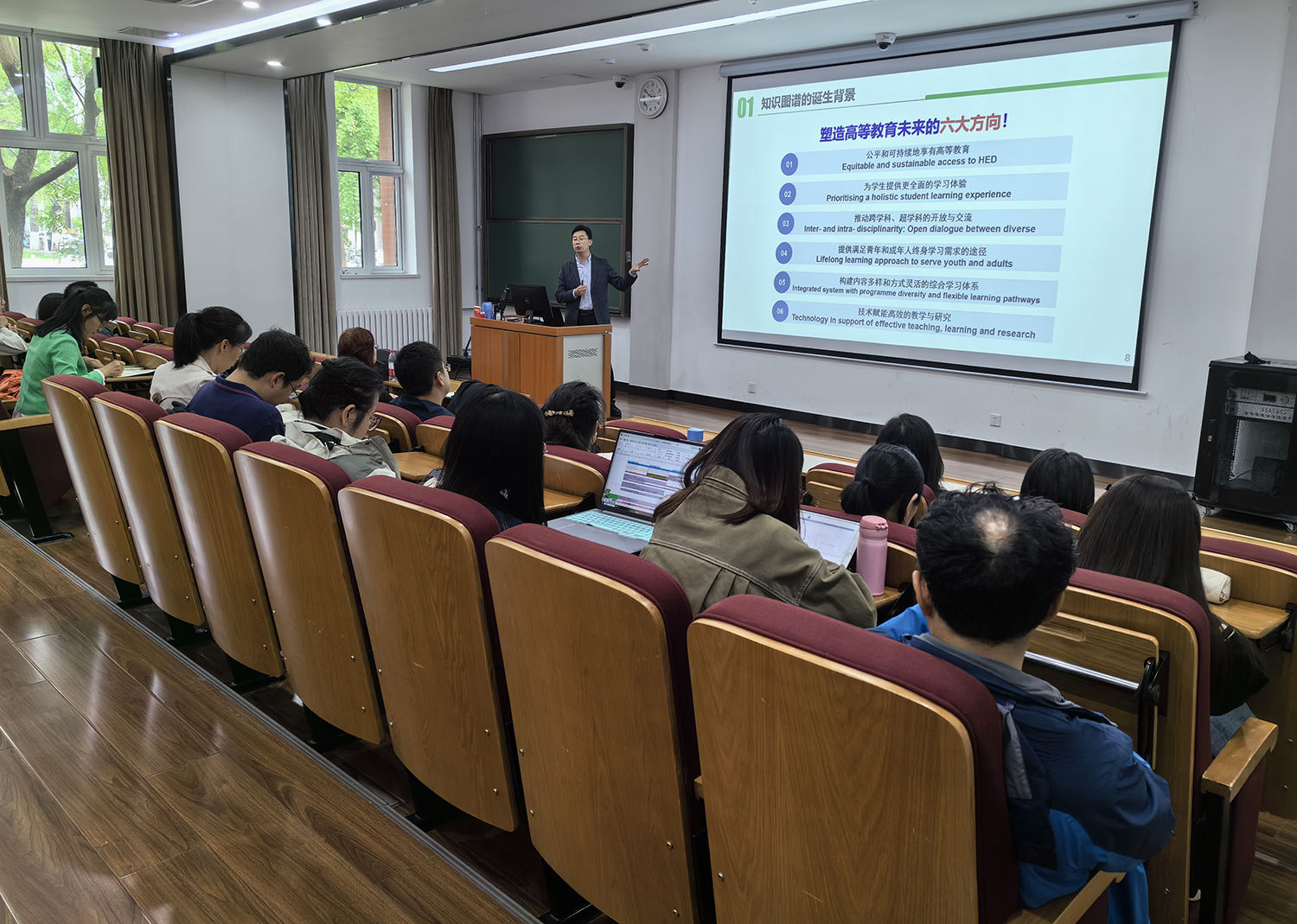 以“教育教学创新改革——知识图谱赋能一流课程建设”为题,宋春风教授详细讲解了知识图谱诞生的时代背景、建设的基本思路和基本步骤,以及知识图谱在教学中的重要作用。