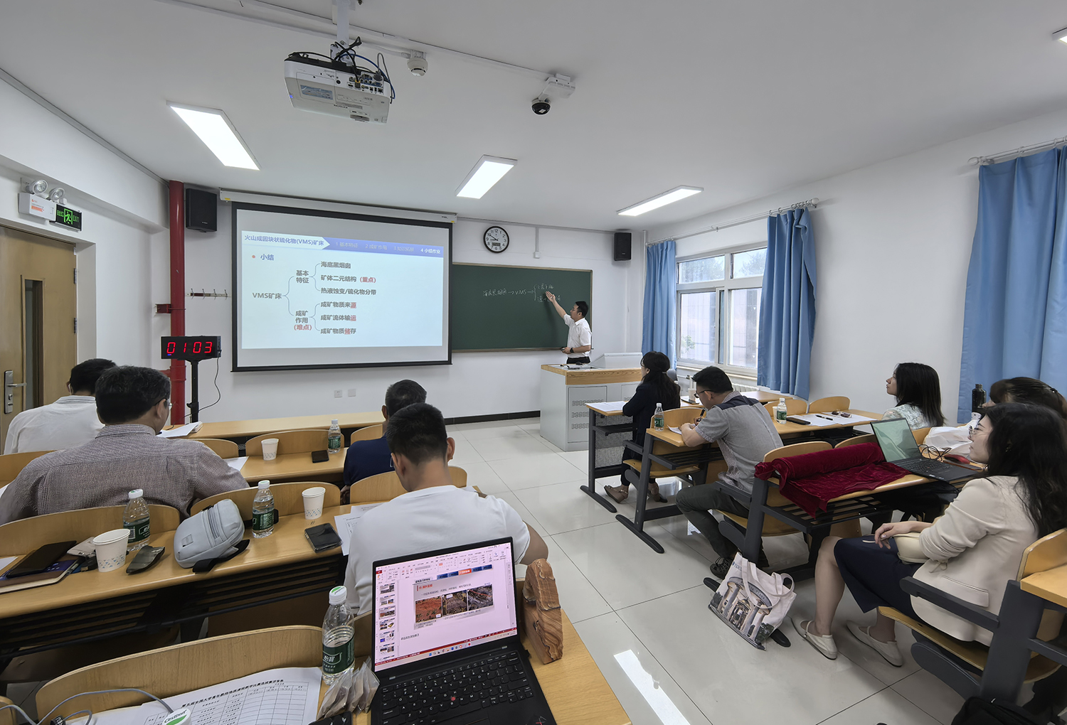 6月27日,第五届全国大学青年教师地质课程教学比赛校内选拔赛现场教学演示评审在地调楼举行,来自8个学院的11名青年教师参赛。