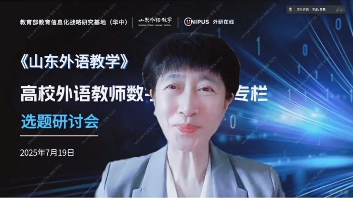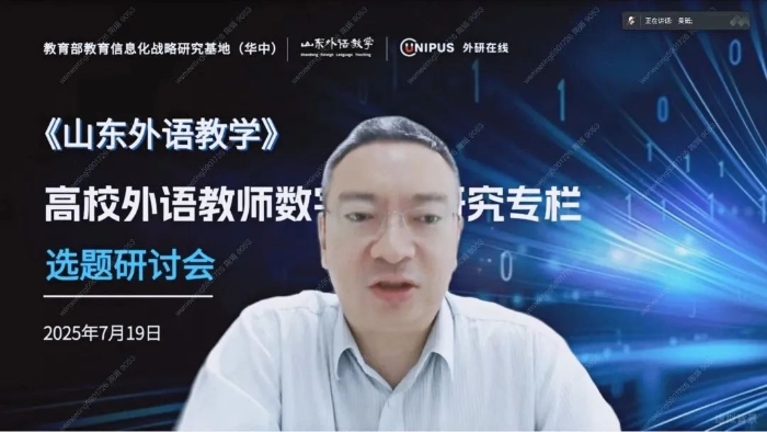 为积极响应国家教育数字化转型战略,深入探究人工智能时代外语教师专业发展核心议题,《山东外语教学》联合北京外研在线数字科技有限公司于2025年7月19日成功举办“高校外语教师数字素养研究”专栏线上选题研讨会。本次研讨会得到教育部教育信息化战略研究基地(华中)的总体指导。专栏特邀主持人、教育部教育信息化战略研究基地(华中)常务副主任、华中师范大学人工智能教育学部副部长吴砥教授,期刊主编、山东师范大学外国语学院院长王卓教授,副编审潘洁老师,以及专栏撰稿团队核心专家代表齐聚云端,深入研讨专栏的学术定位、核心选题方向及其对外语学科发展的重大价值,为专栏的高质量建设奠定了坚实基础。