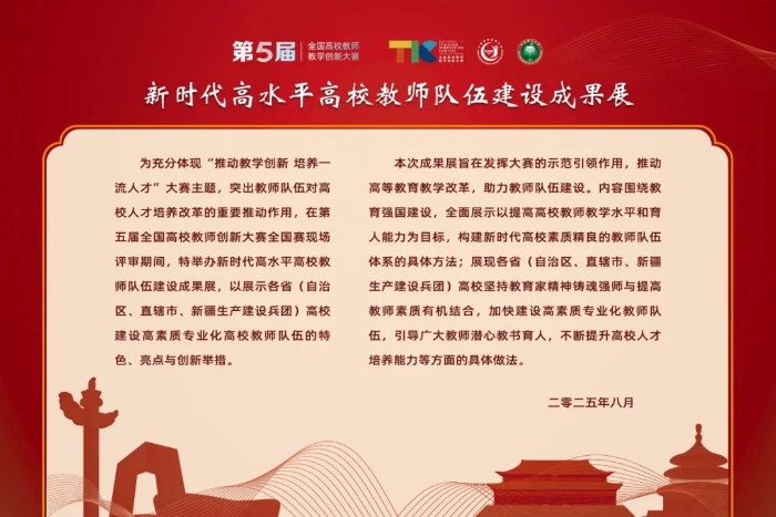 为深入学习贯彻全国教育大会精神,落实《教育强国建设规划纲要(2024—2035年)》,紧扣教育强国建设目标,深入推动高等教育教学改革,助力新工科、新医科、新农科、新文科建设,全面推进课程思政建设,推动产教融合走深走实,进一步推进高等教育高质量发展,打造高校教学改革的风向标,由教育部高等教育司指导、中国高等教育学会主办的第五届全国高校教师教学创新大赛于2025年3月正式启动。