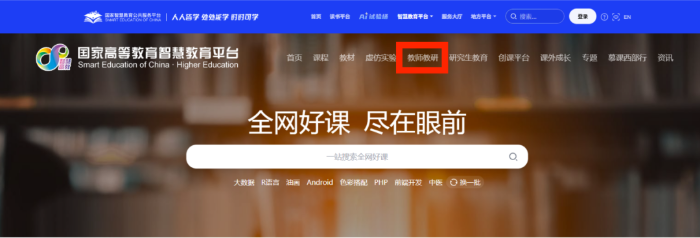 网址:https://higher.smartedu.cn/teacher 点击“教师教研”模块