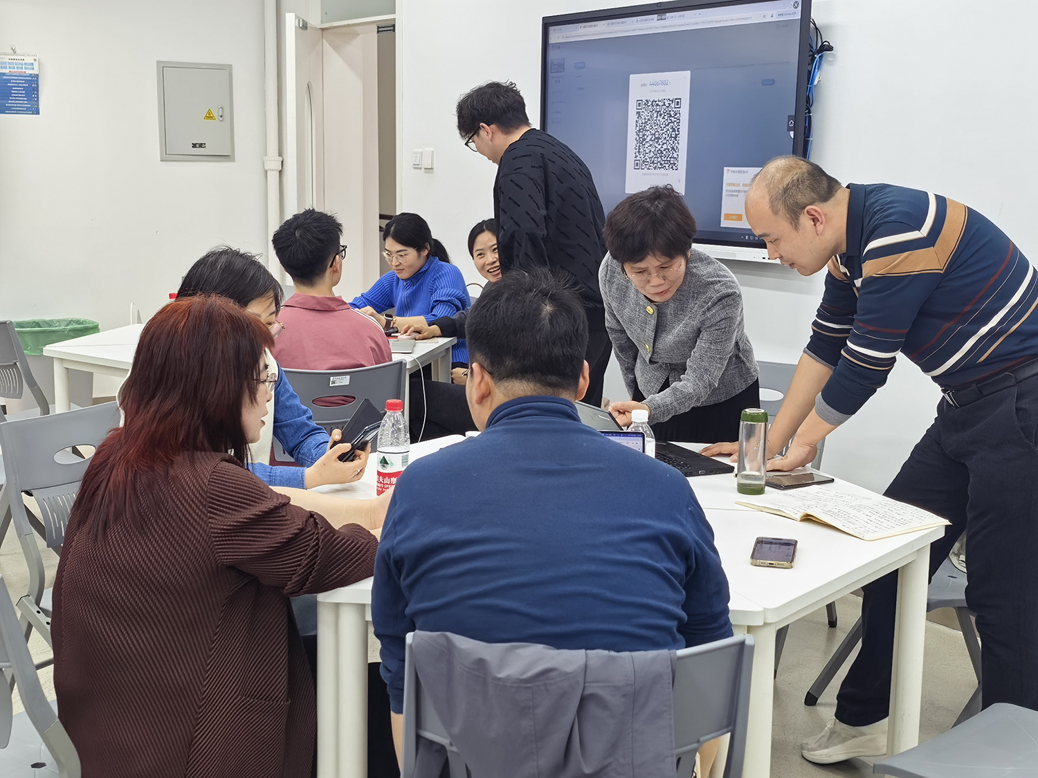 徐国艳副教授指出,技术浪潮与教育范式的转变、学生作为数字原住民的新特点、社会需求对未来人才能力图谱的新要求、政策背景与顶层设计的新规划等,都促使智慧课程建设成为高校教师应时代之答的使命。她强调,智慧课程不是技术的堆砌,而是内容、过程、评价的系统性重构,内容智能是基础、学生智能是关键、评价智能是保障,三大智能,让知识可生长、学习有支持、成长有方向。以所讲授“汽车底盘构造”课程为例,徐国艳副教授详细讲解了三融驱动的课程内容体系重构、工具赋能的智慧教学过程塑造、数据引航的教学评价方法创新等内容,并就知识图谱、AI助教矩阵、AI项目评测智能体的设计、操作等问题对参加培训教师进行了现场指导。