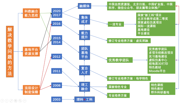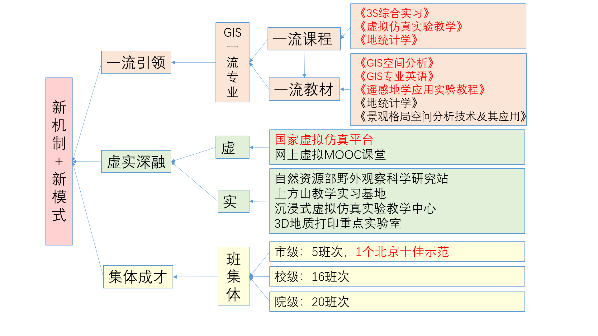 教学团队以“如何建设具有地质大学特色的GIS专业?如何依托国家特色专业建设、专业综合改革及国家一流专业建设,打造优质教学资源,服务学生培养?”为解决问题出发点,基于一流理念引领,进行了虚实深融的地理信息技术创新人才培养探索与实践,促进了学生集体成才。