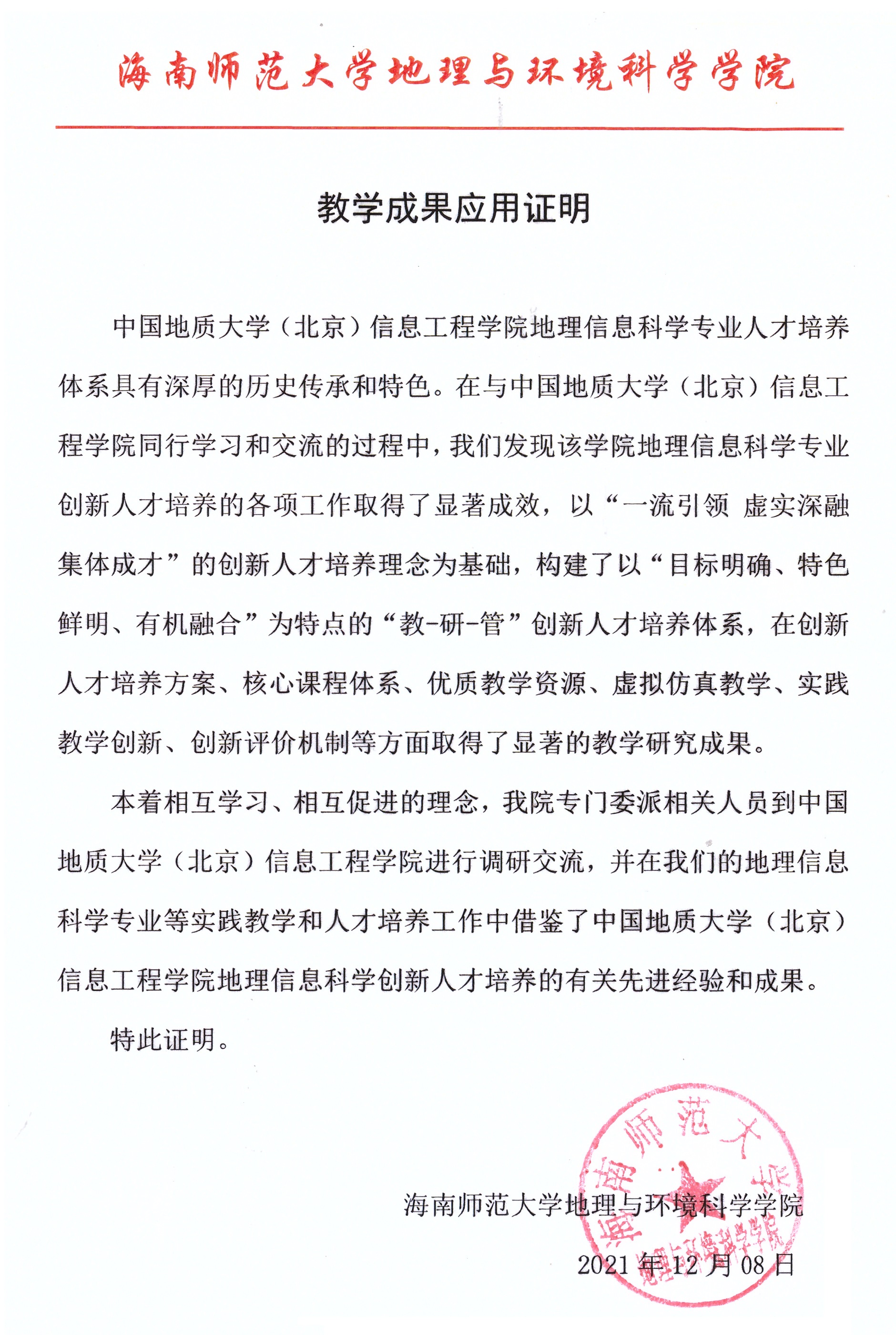 名称 | 海南师范大学专业建设与教学成果应用证明 |
