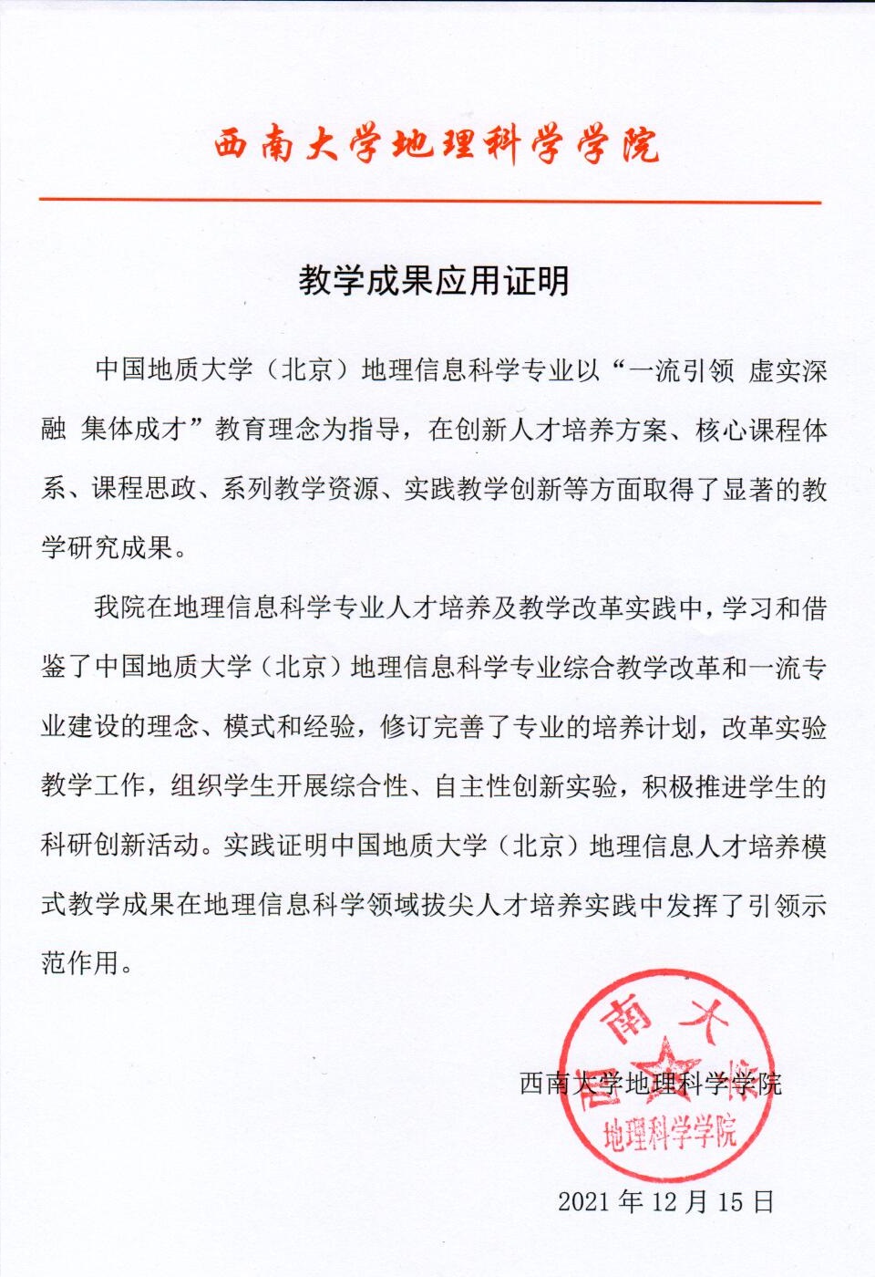 名称 | 西南大学专业建设与教学成果应用证明 |