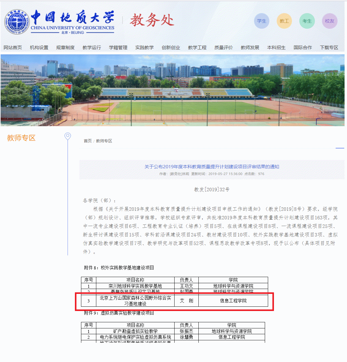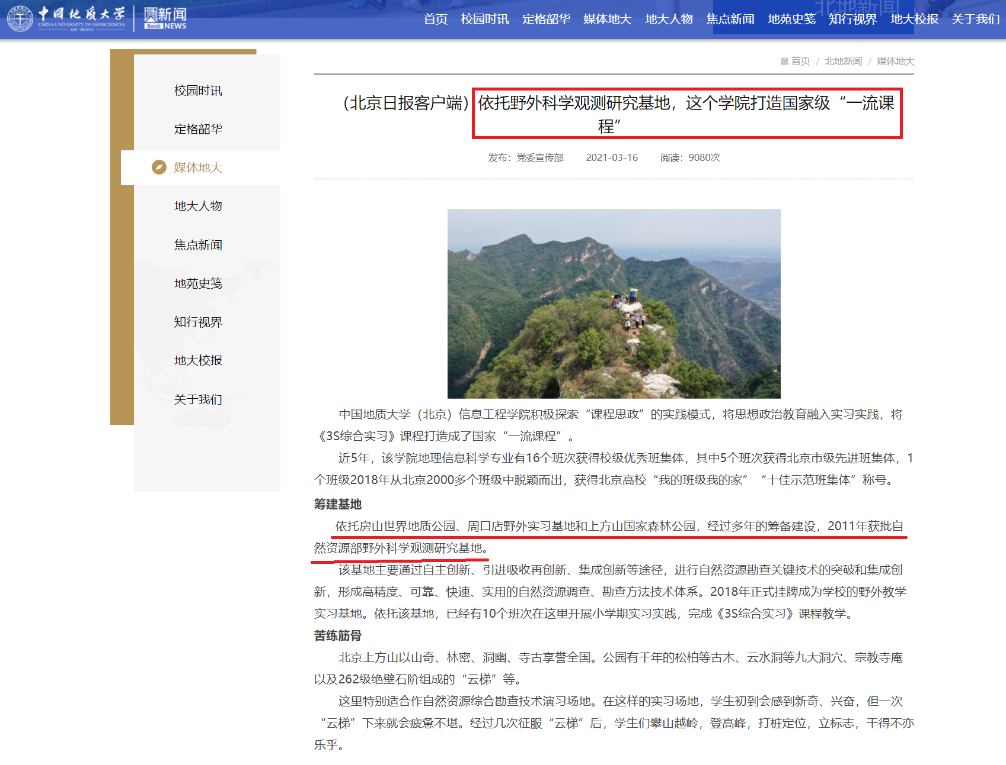名称 | 北京高等教育“本科教学改革创新项目” ——上方山GIS专业3S野外综合实习创新实训基地及课程建设 | ||