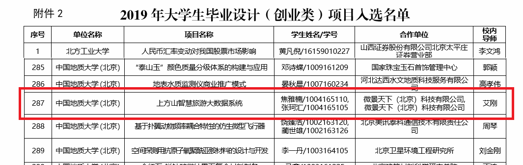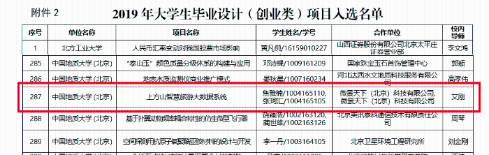 名称 | 2019年(2020届)北京市大学生毕业设计(创业类)项目——上方山智慧旅游大数据系统 | ||