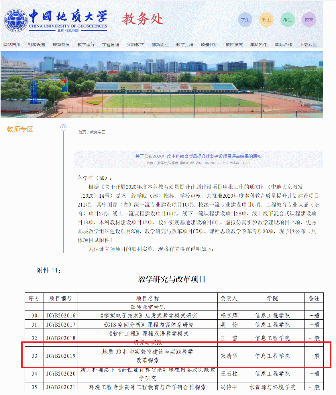 名称 | 教学研究与改革项目——地质3D打印实验室建设与实践教学改革探索 | ||