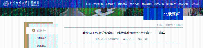 名称 | 举办中国地质大学(北京)3D打印地学建模大赛组织优秀团队参加全国三维数字化创新设计大赛 | ||