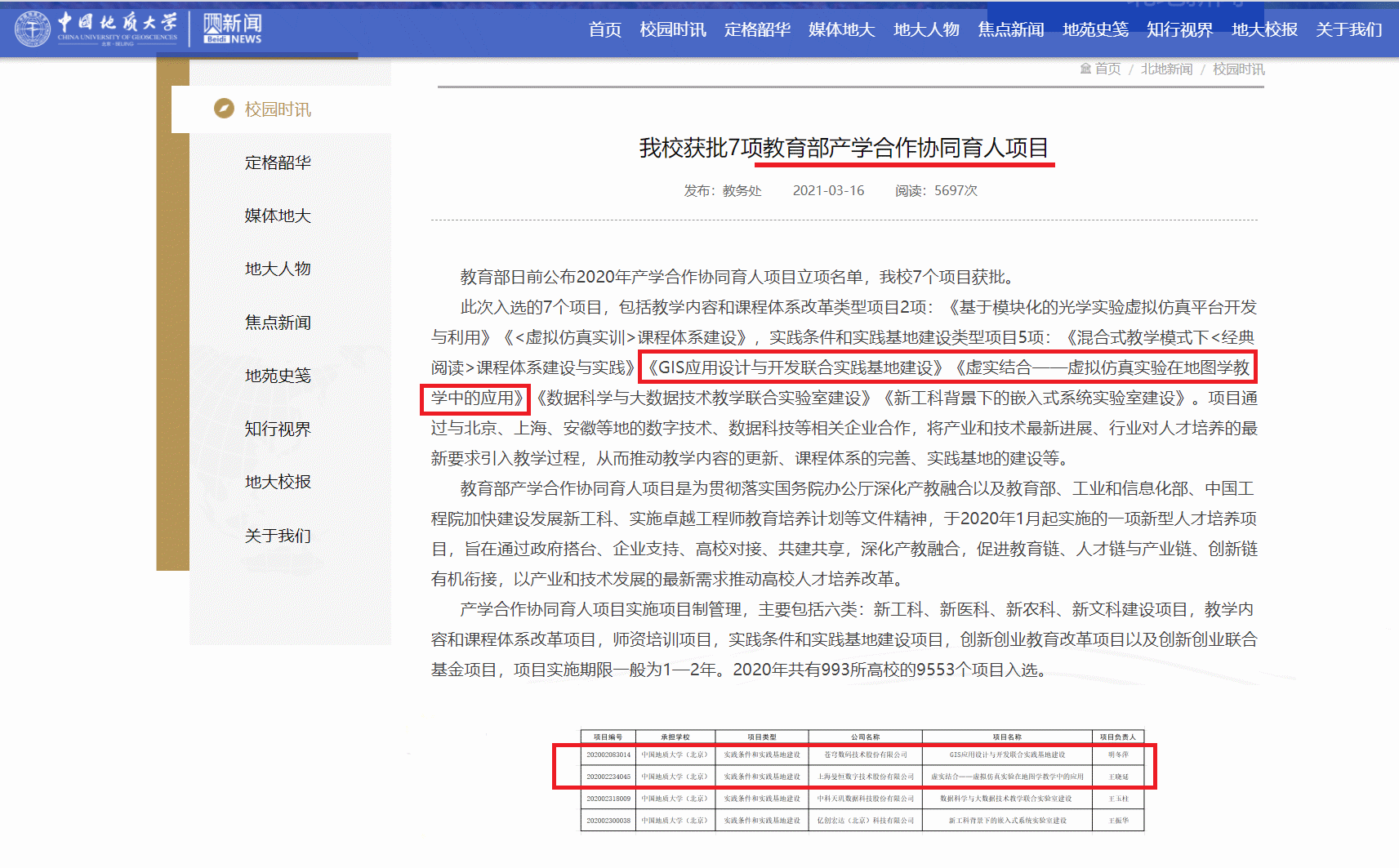 名称 | GIS应用设计与开发联合实践基地建设 | ||