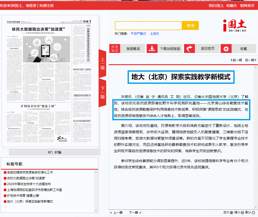 名称 | 中国自然资源报 报道基地建设成效——实践教学新模式 | ||