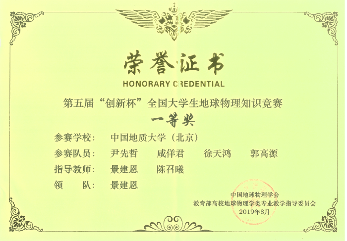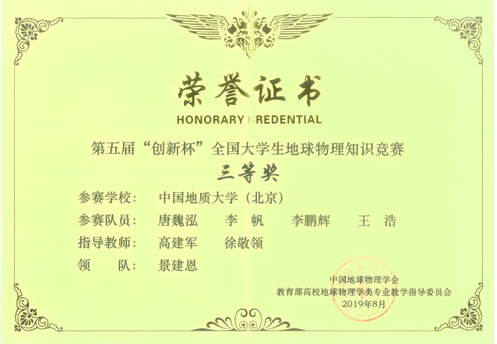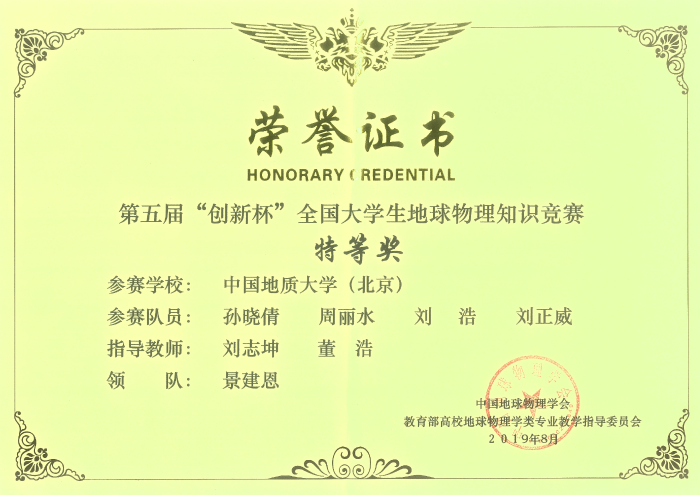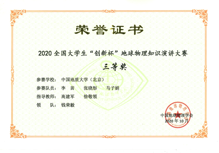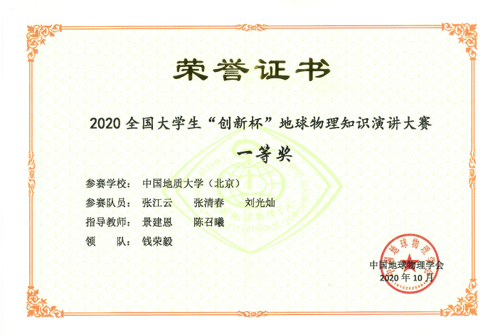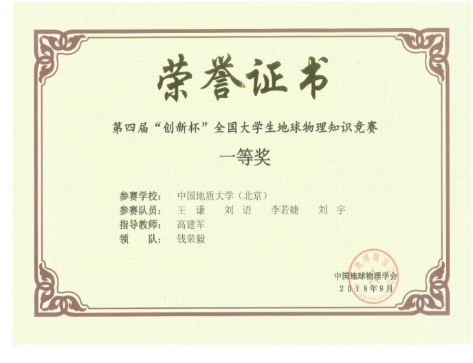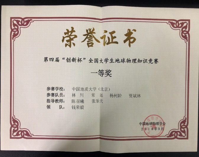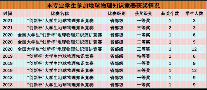 本专业学生学科竞赛荣誉——全国大学生地球物理知识竞赛