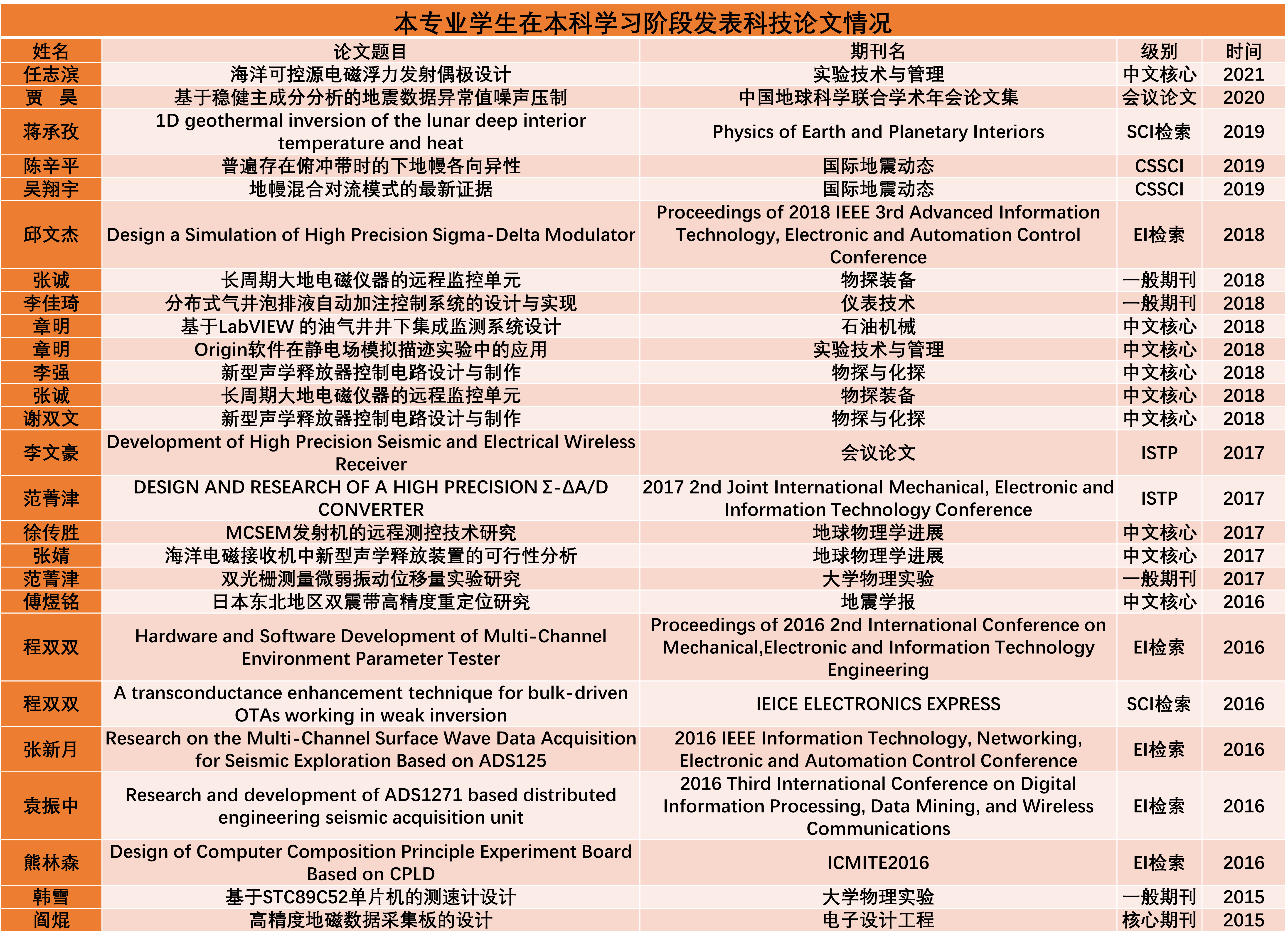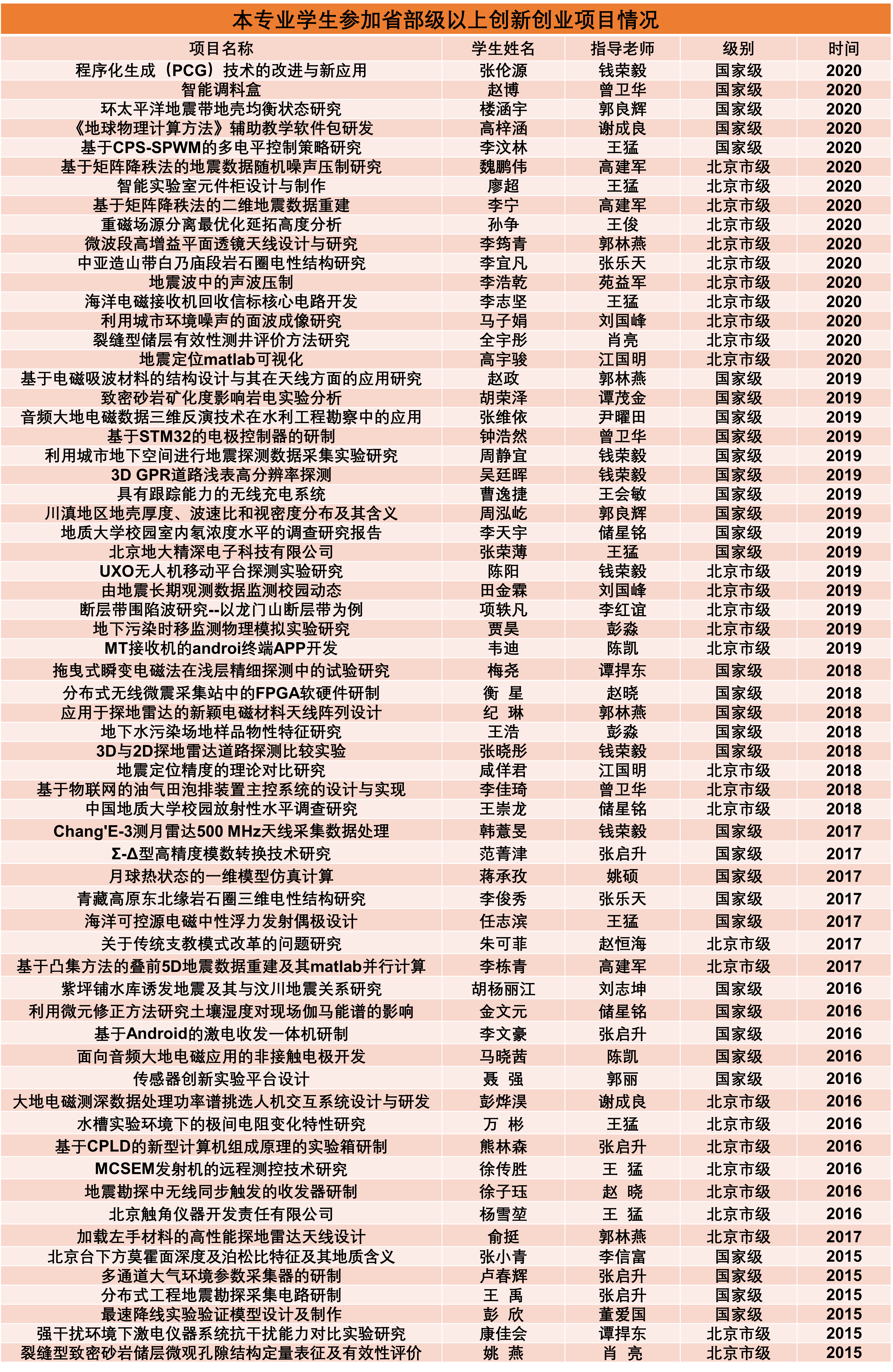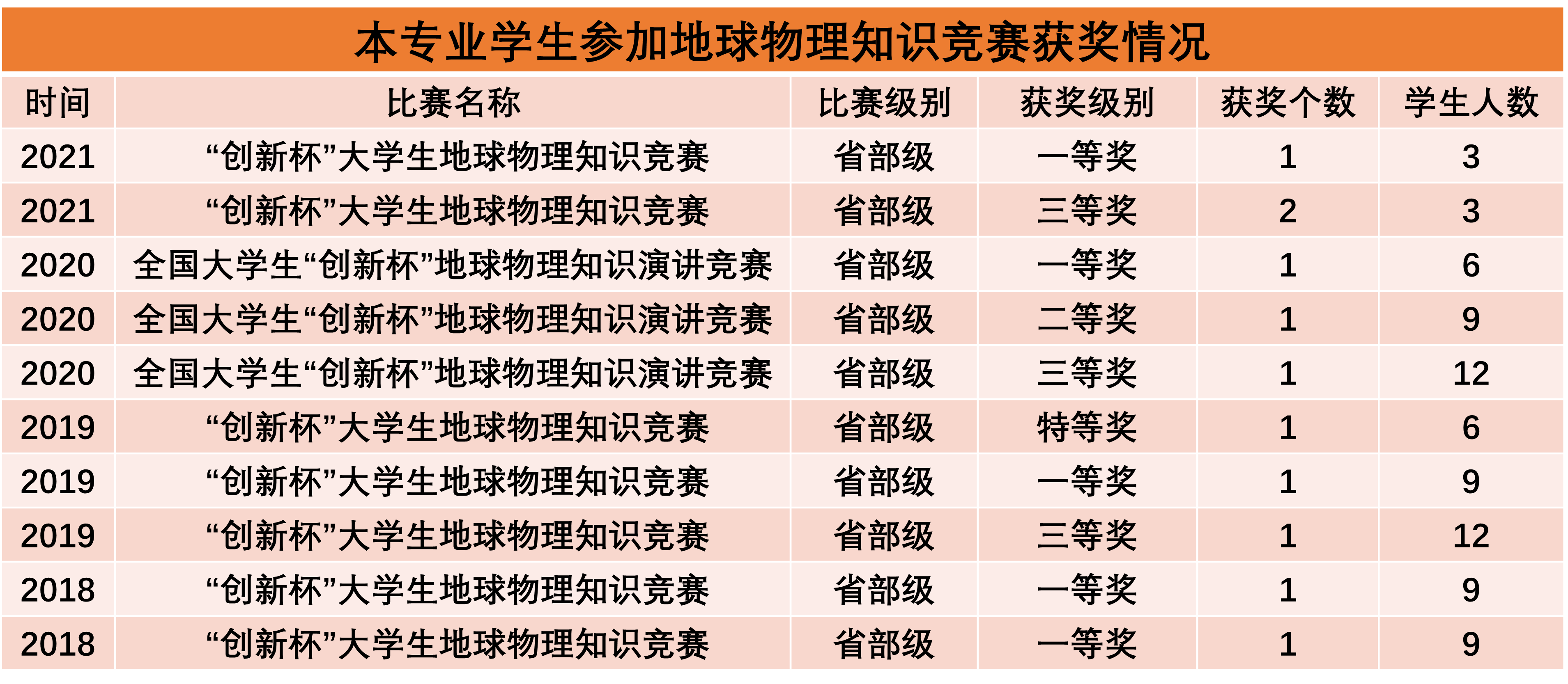 本专业学生学科竞赛荣誉——全国大学生地球物理知识竞赛