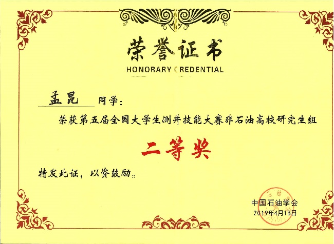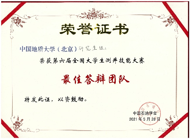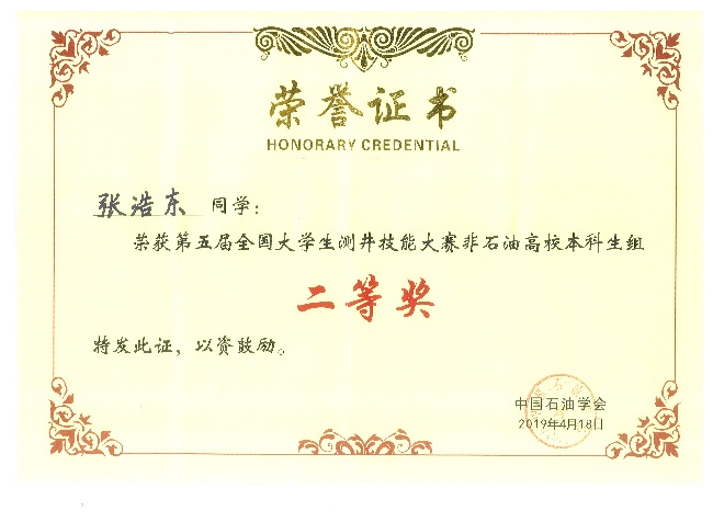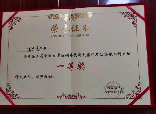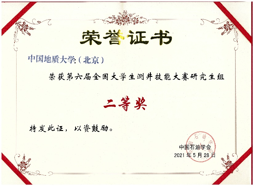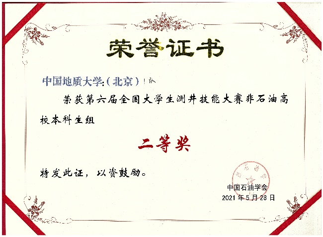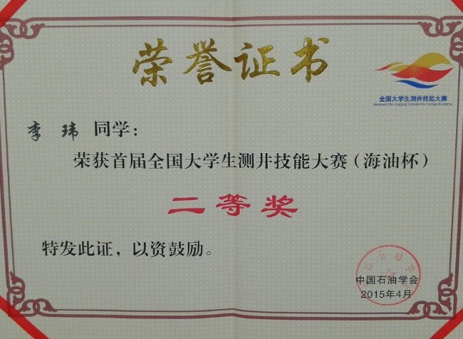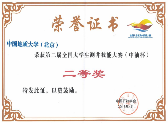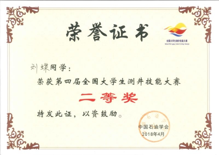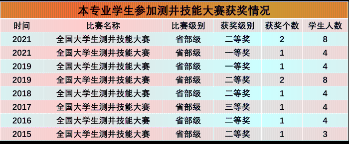 本专业学生学科竞赛荣誉——全国大学生测井技能大赛