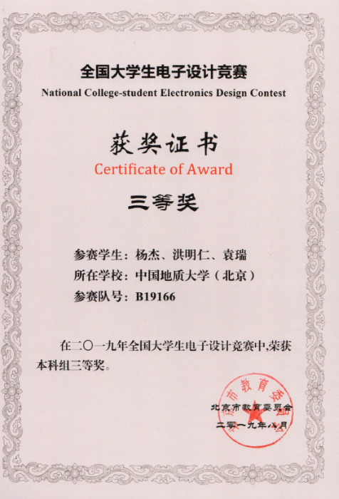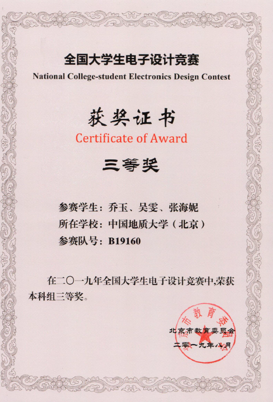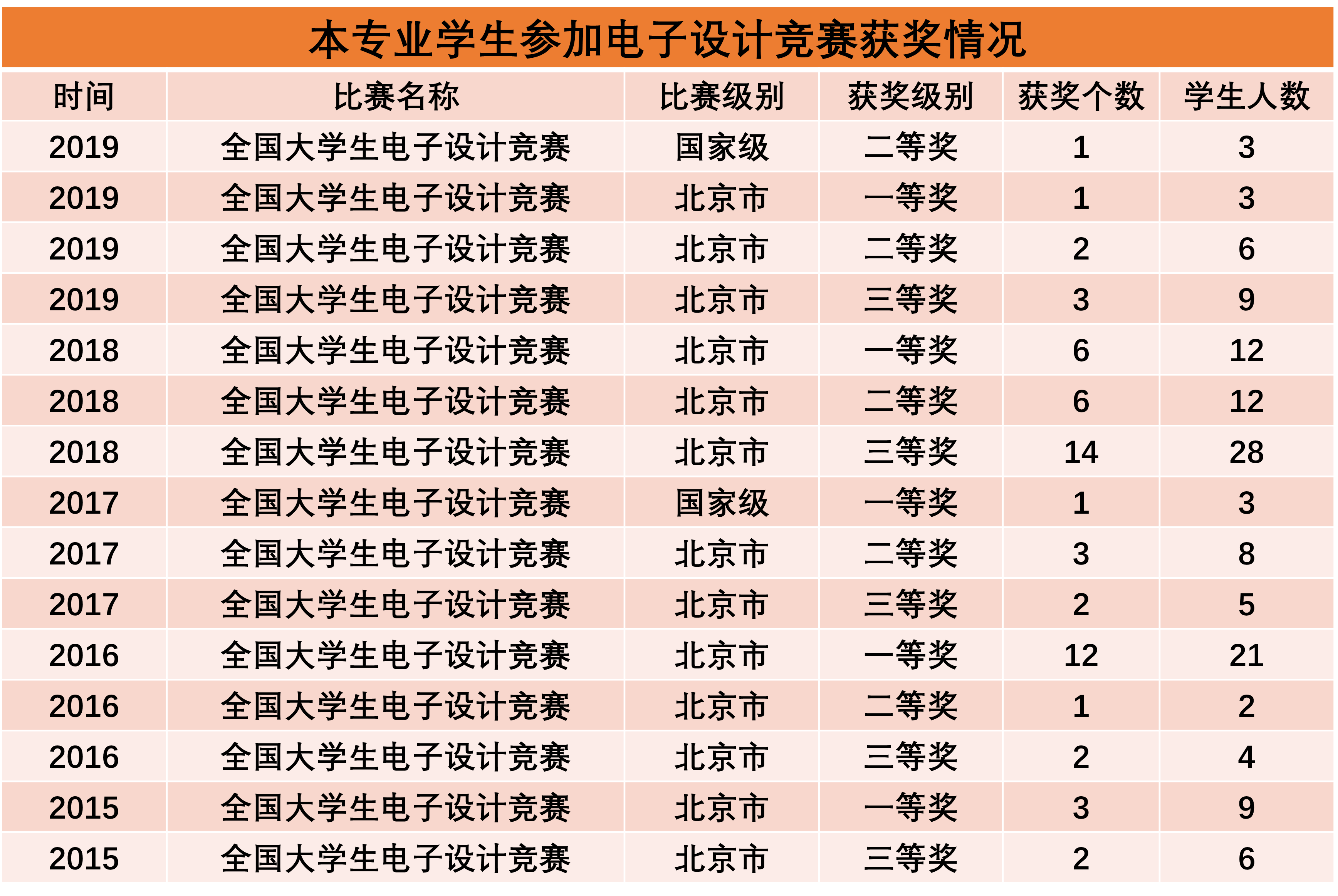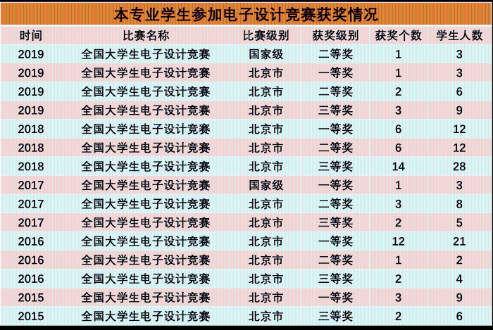 本专业学生学科竞赛荣誉——全国大学生电子设计竞赛