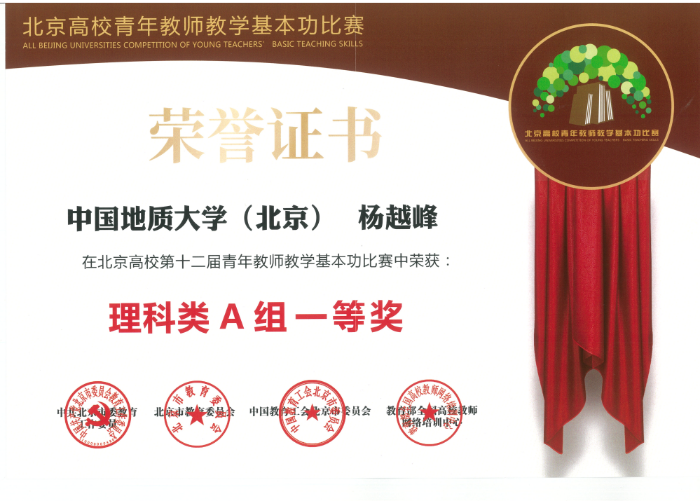 杨越峰 | 2021 | 北京高校第十二届青年教师教学基本功比赛理科类A组一等奖 |