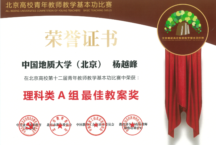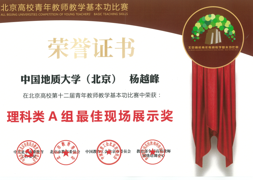 杨越峰 | 2021 | 北京高校第十二届青年教师教学基本功比赛理科类A组最佳现场展示奖 |
