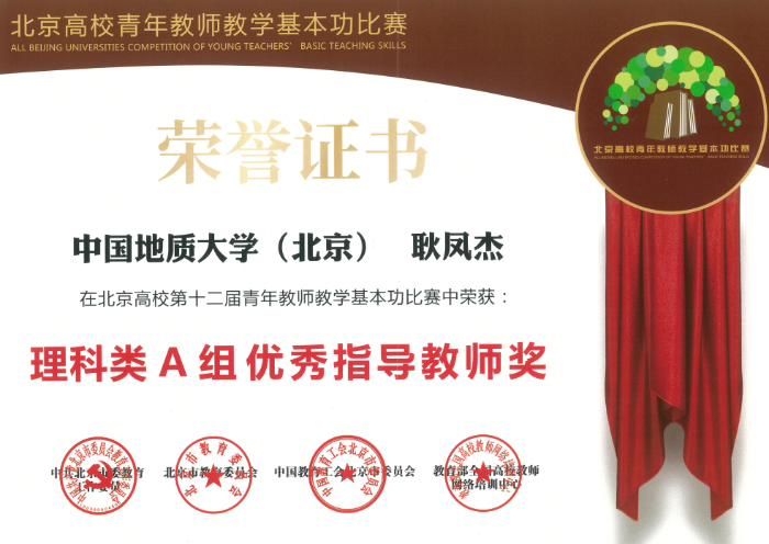 耿凤杰 | 2021 | 北京高校第十二届青年教师教学基本功比赛理科类A组优秀指导教师奖 |