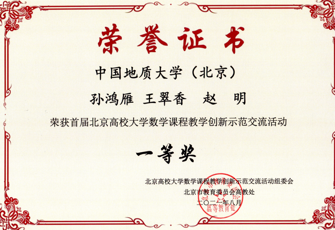 孙鸿雁 | 2021 | 首届北京高校大学数学课程教学创新示范交流活动一等奖 |