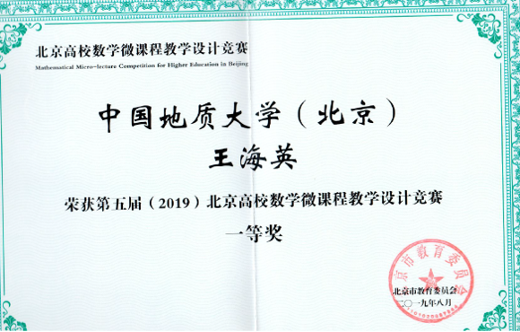王海英 | 2019 | 第五届(2019)北京高校数学微课程教学设计竞赛奖一等奖 |