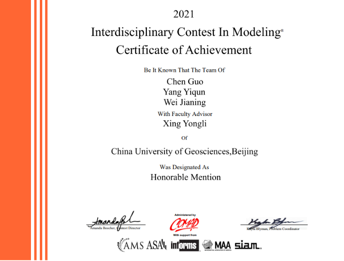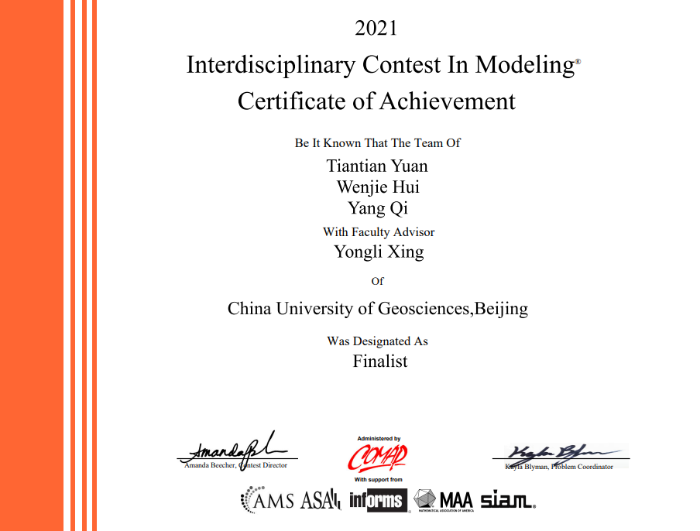 (1)美国大学生数学建模竞赛获奖证书