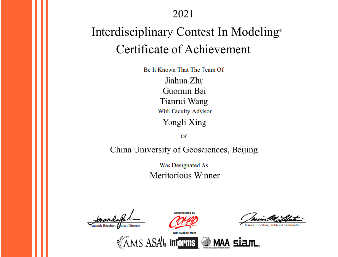 白国敏 | 1005193210 | 美国大学生数学建模竞赛 | 2021 | M奖 |