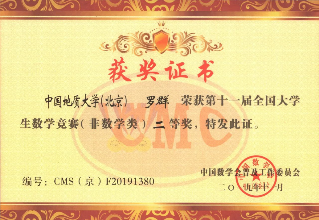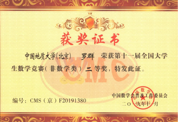 罗群 | 1005183217 | 全国大学生数学竞赛 | 2019 | 国2北1 |