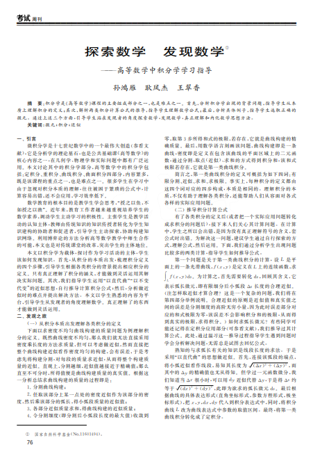 【4】孙鸿雁,耿凤杰,王翠香,探索数学发现数学——高等数学中积分学学习指导,考试周刊,2018(A0):76-77