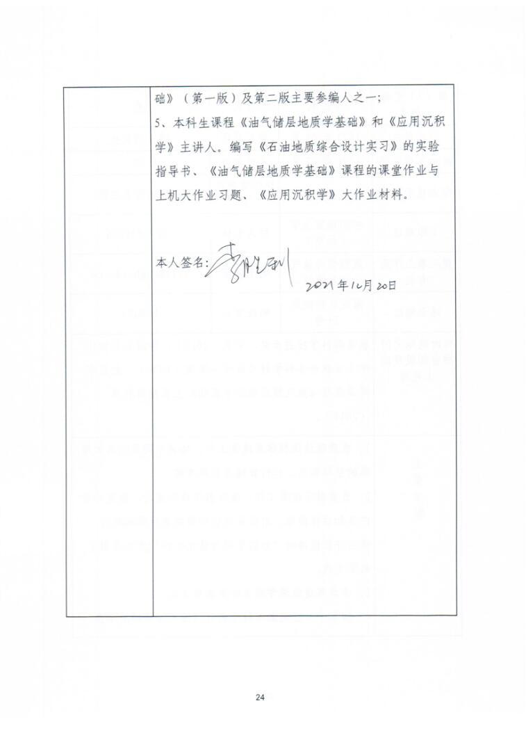 何时何地受何种省部级及以上奖励 | 教育部科学技进步奖二等奖(2018),中国石油和化学工业联合会科学技术进步一等奖(2019),北京市精品课程《油气储层地质学基础》主要授课教师(2011)。 | ||