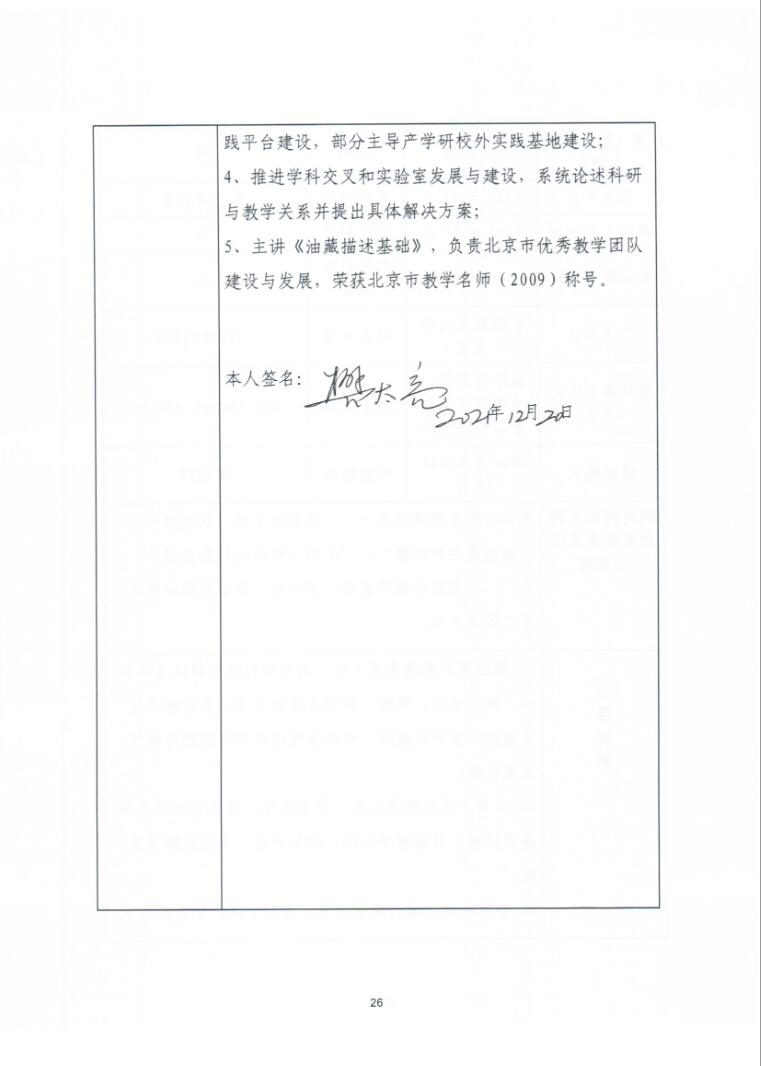 何时何地受何种省部级及以上奖励 | 2017年入选“求真学人”计划,2017年获教育部科技进步二等奖,2019年主编的教材《非常规地质能源概论》获得“北京高校优质本科教材”和“中国石油和化学工业优秀教材奖二等奖” | ||