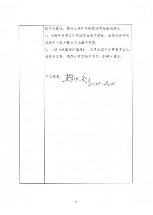 | 1、多方面参与地质资源与地质工程、石油与天然气工程2个一级学科的建设和交叉融合工作,协调搭建产学研合作平台,积极推进实验室建设和实践基地建设,提出“以科研促教学,以科研带教学,科教相长”论述; | ||