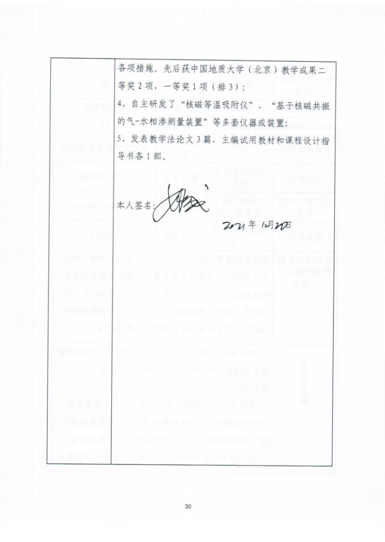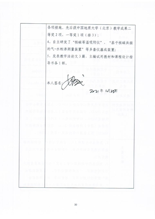 何时何地受何种省部级及以上奖励 | 国土资源科学技术奖(2012),教学仪器优秀奖(2011),中国石油工业和化学工业联合会科技进步奖(2018),2021年中国地质大学(北京)第一届教师教学创新大赛一等奖。 | ||