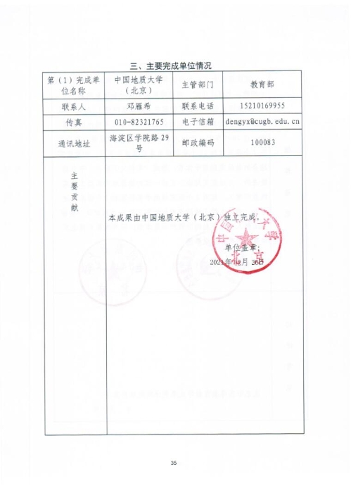 工作单位 | 中国地质大学(北京) | 联系电话 | 13811509936 |