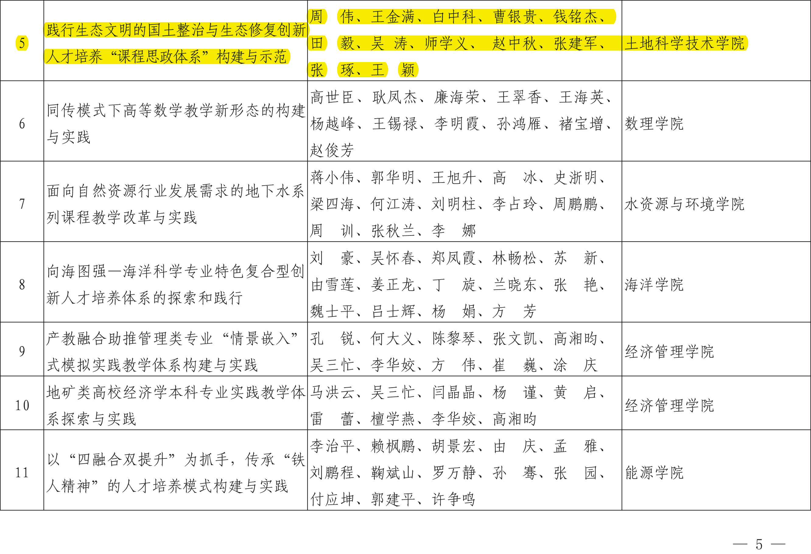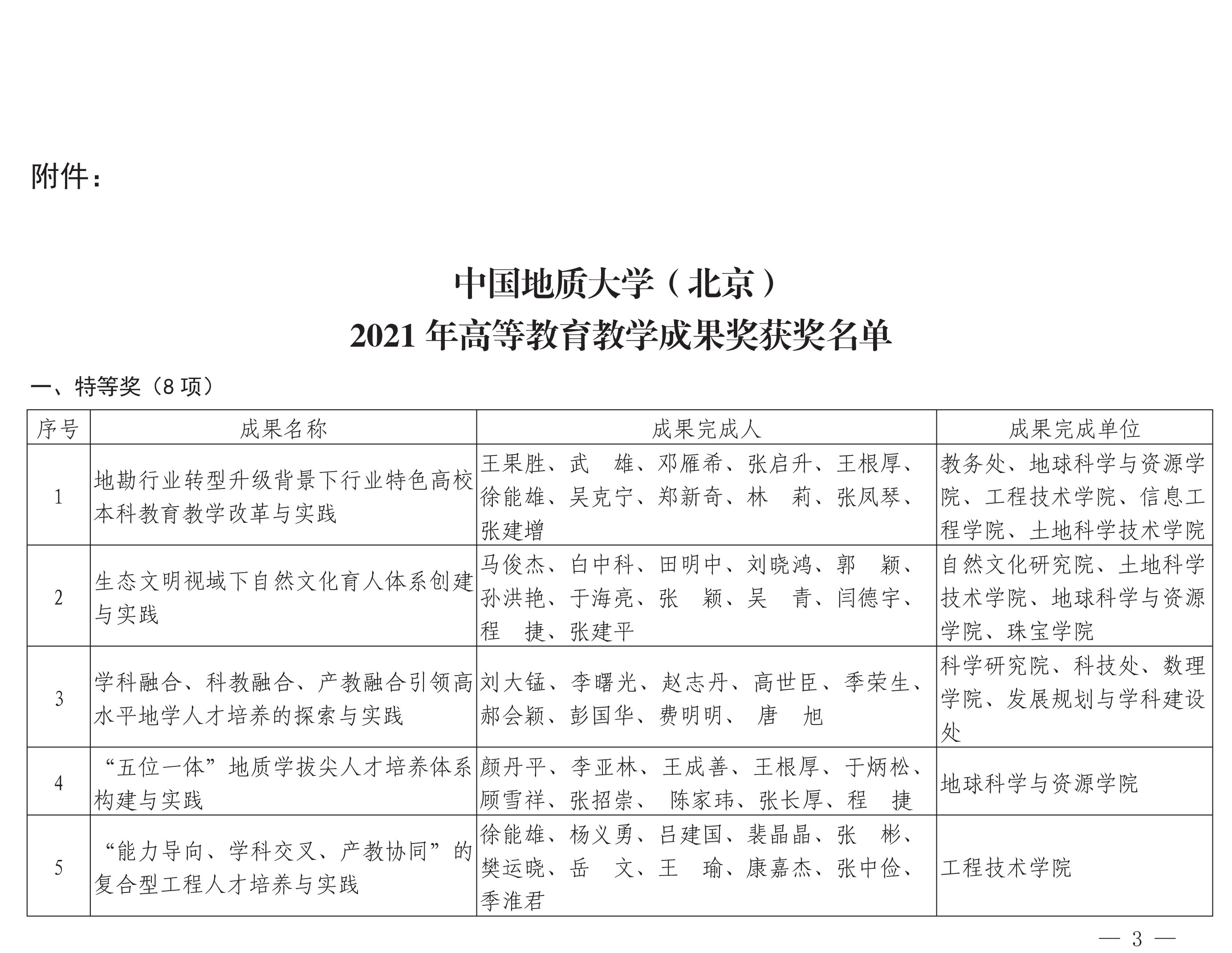 1. 中国地质大学(北京)2021年教育教学成果一等奖:践行生态文明的国土整治与生态修复创新人才培养“课程思政体系”构建与示范;