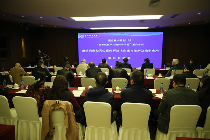我校校长孙友宏出席会议并致辞,他指出,难熔元素和重要的放射性同位素体系的分析技术是解决地球科学难题不可或缺的关键技术。该项目以研发难熔元素及其同位素体系高精度分析技术为突破口,拟建立国际水准铂-锇和铪-钨放射性同位素体系分析技术,此外铼-锇同位素定年测定技术计划赶超国际水平,学校将按照相关管理要求,确保项目如期实现预定目标。