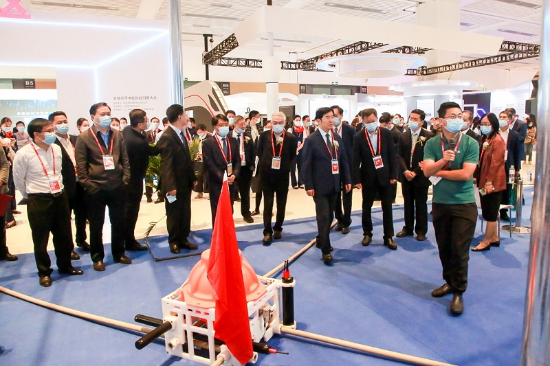 本次大会,我校共有九项科研成果亮相大会核心板块“献礼建党100周年”高校科技创新成果展,受到广泛关注。中国高等教育学会会长、教育部原党组副书记、副部长杜玉波,山东省人民政府副省长、党组成员王心富在巡馆时驻足观看了我校陈凯副教授的“小型海底电磁接收机”成果,并听取了详细讲解。多家企业对我校相关科技成果转化项目表示关注,并与项目团队进行了深入洽谈。