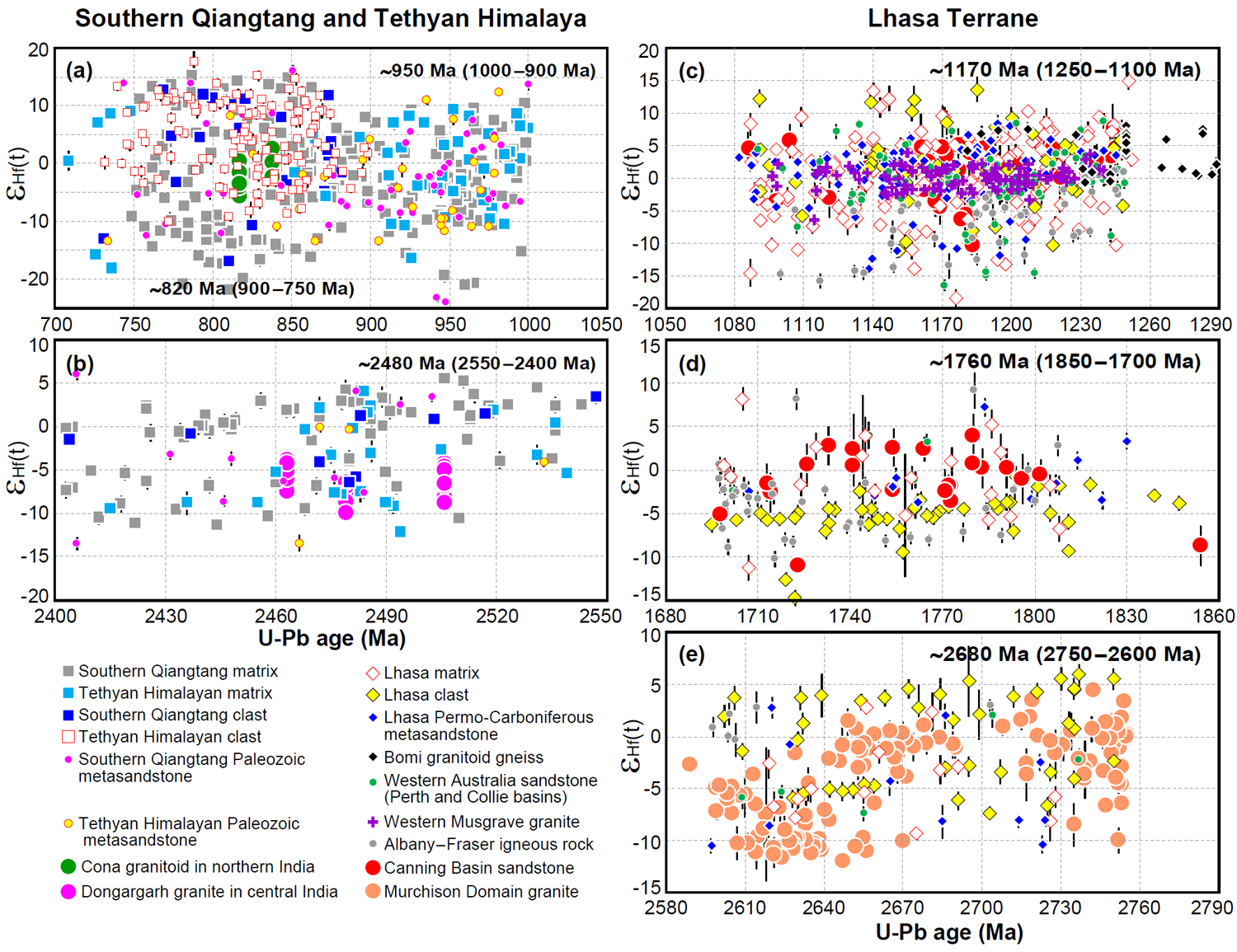 微陆块是古老造山带的重要组成部分,可靠限定其古地理位置是重建古老造山带演化历史的关键。然而,由于很难鉴别微陆块有别于其他大陆块体的标志性特征,单一方法重建出来的古地理位置往往是有问题的。青藏高原南部的拉萨地体是这种情况的典型代表。拉萨地体的古地理位置有很多种解释,包括印度大陆北部、印度大陆和澳大利亚大陆之间、澳大利亚北西部,甚至位于阿拉伯和印度之间的东非造山带北段等。要破解拉萨地体的古地理之谜,不但需要新的确凿证据,而且还需要对各种已有资料的合理解释。