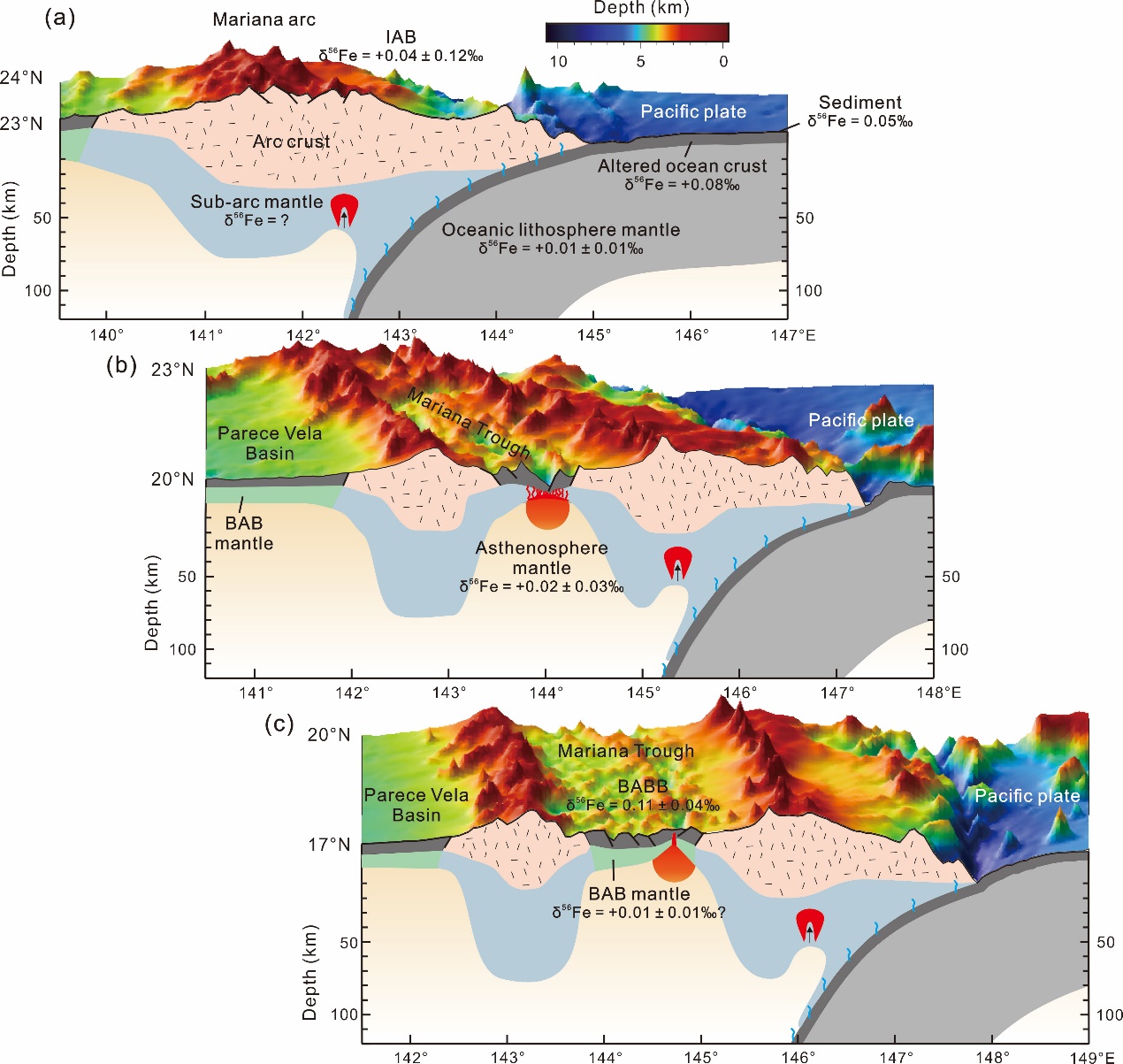 该研究从Fe同位素这个角度,重新探讨了北马里亚纳海槽弧后盆地的演化过程,为研究全球弧后盆地的形成与发展奠定了基础。