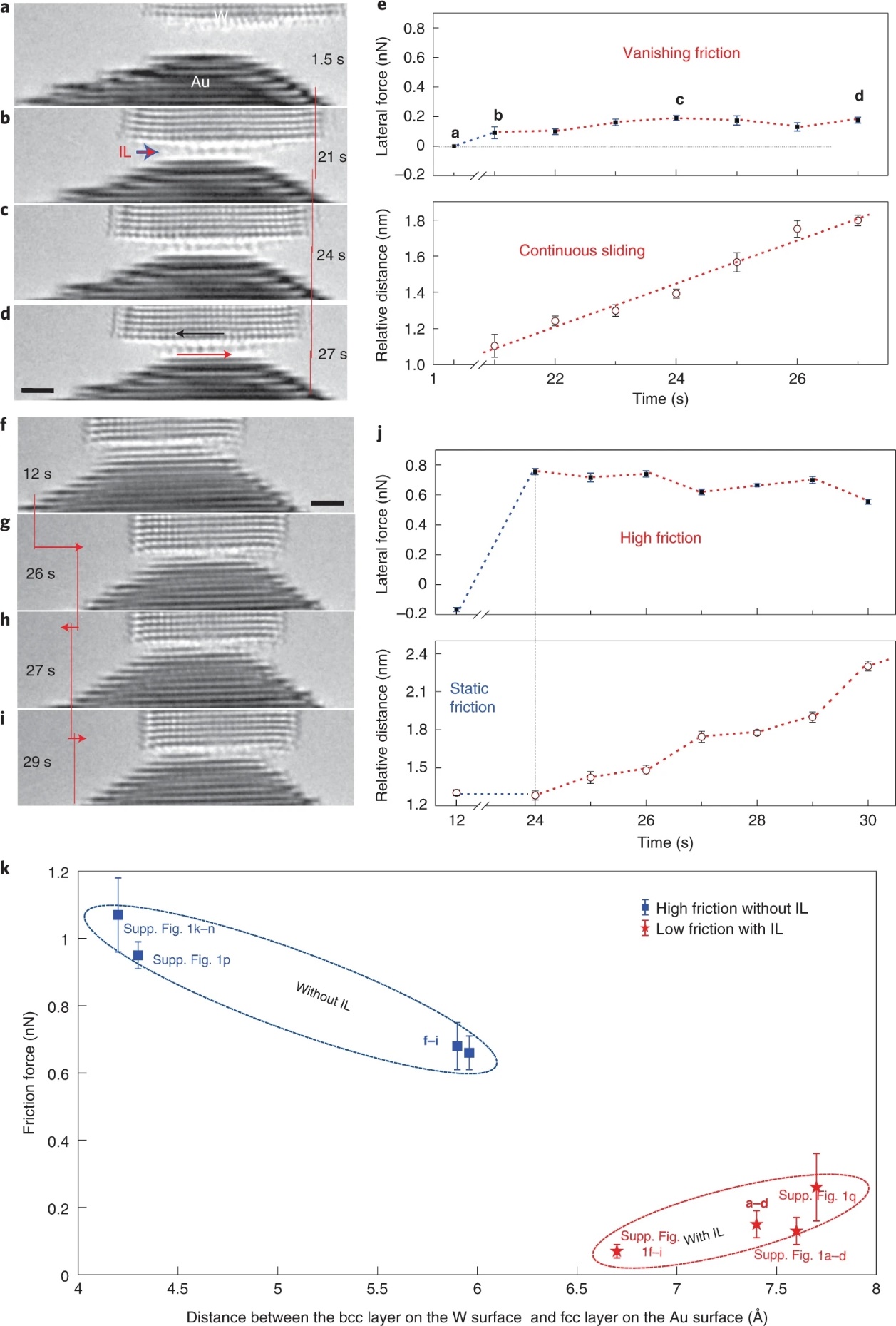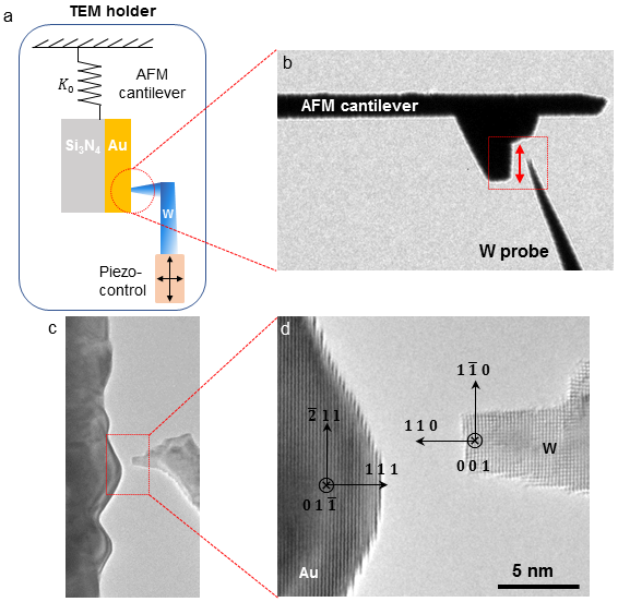 针对上述研究难题,我校教师与美国匹兹堡大学和西北太平洋国家实验室团队合作,将高分辨原位透射电子显微技术和原子力显微技术结合,原位观察摩擦过程中金属微凸体接触界面原子尺度结构变化,并实时监测摩擦力,取得了以下认识: