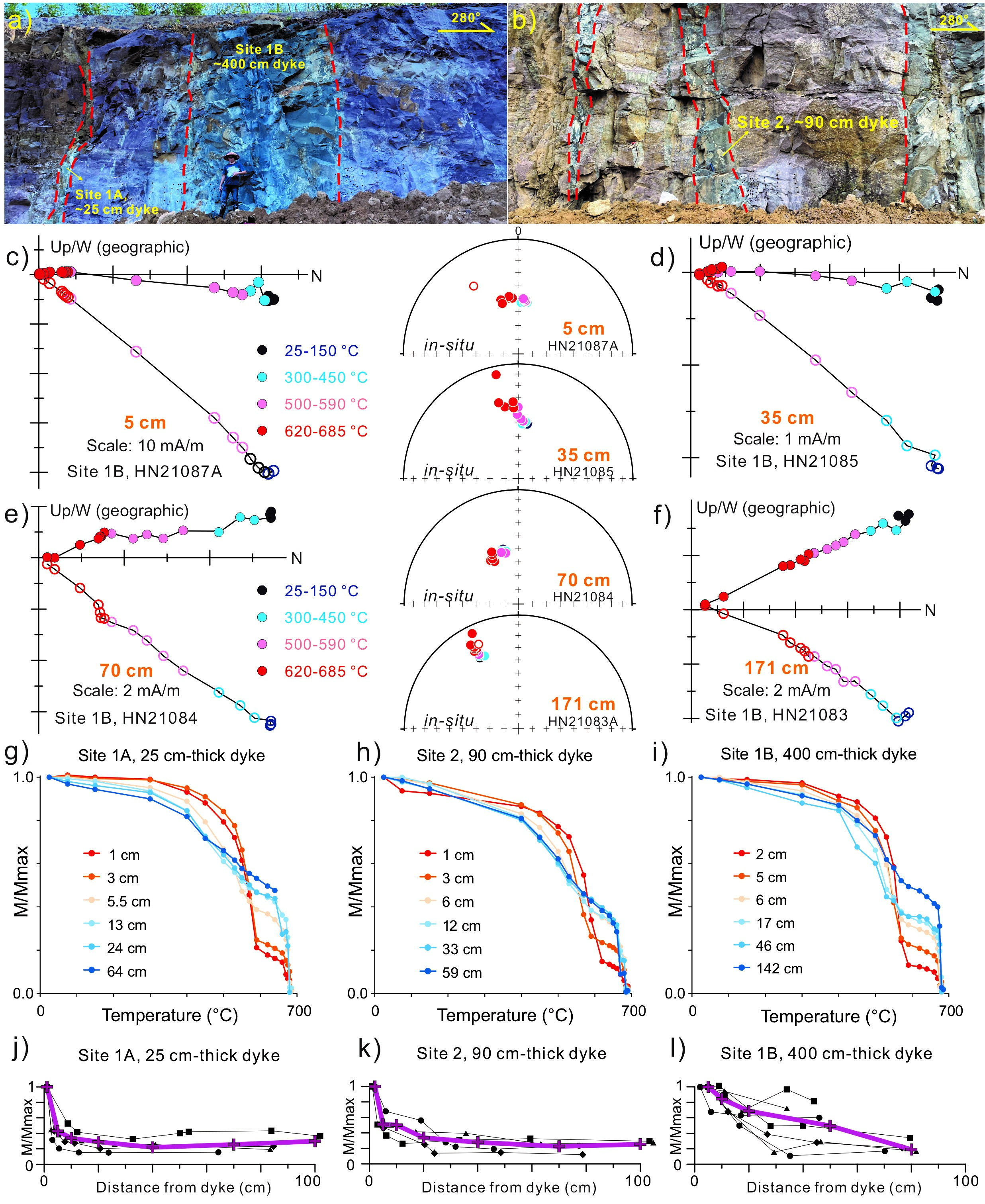 (1) 岩墙侵入对围岩的热/流体影响非常有限,并且与岩墙厚度相关。天然剩磁强度与解阻温度可以作为识别被烘烤围岩热剩磁的有效指标,完善了烘烤边检验。