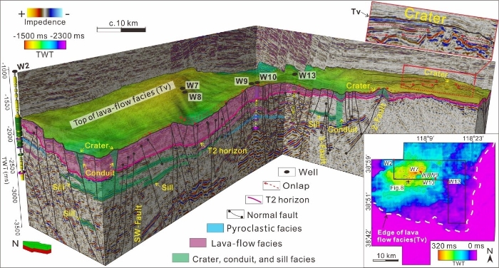 (1)在同裂谷阶段和裂谷后阶段,裂谷内切入盆地基底的正断层控制着火山通道系统的空间分布;裂谷发育后期断层停止活动,但这些正断层仍可继续充当岩浆上涌的通道。