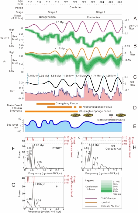 (2)早寒武世温室期的短期海平面升降可能与陆地-海洋水交换导致的陆地含水层的不平衡充排有关,而陆地-海洋水交换可能主要是由~1.5 Myr斜率周期变化控制的极向水气和热量输送主导(图3)。