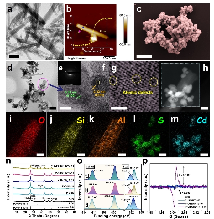 图1:CdS及其埃洛石复合材料微观形貌、晶体结构和表面价态分析